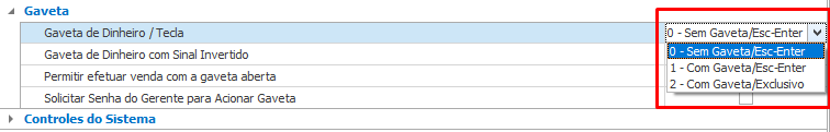 0 - Sem Gaveta/Esc-Enter = A Gaveta está desabilitada;