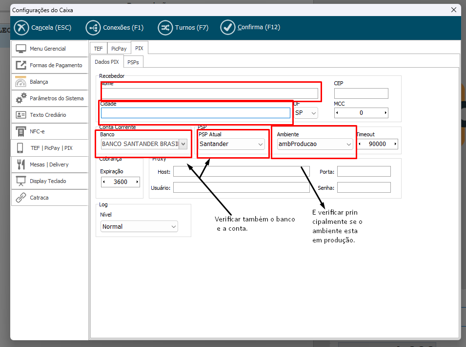 Primeiramente, será necessário verificar se as informações do banco estão devidamente preenchidas dentro do sistema: