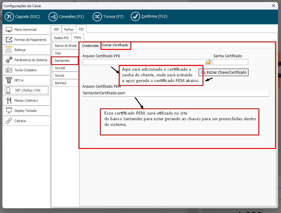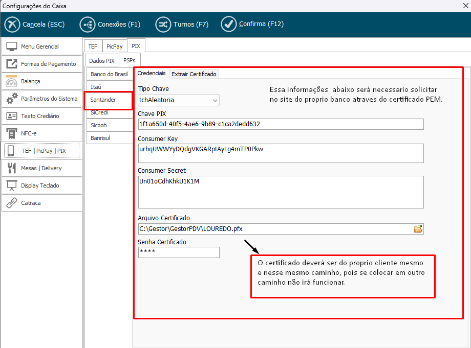 Em seguida, deve ser configurado no site do banco do Santander na conta do cliente: