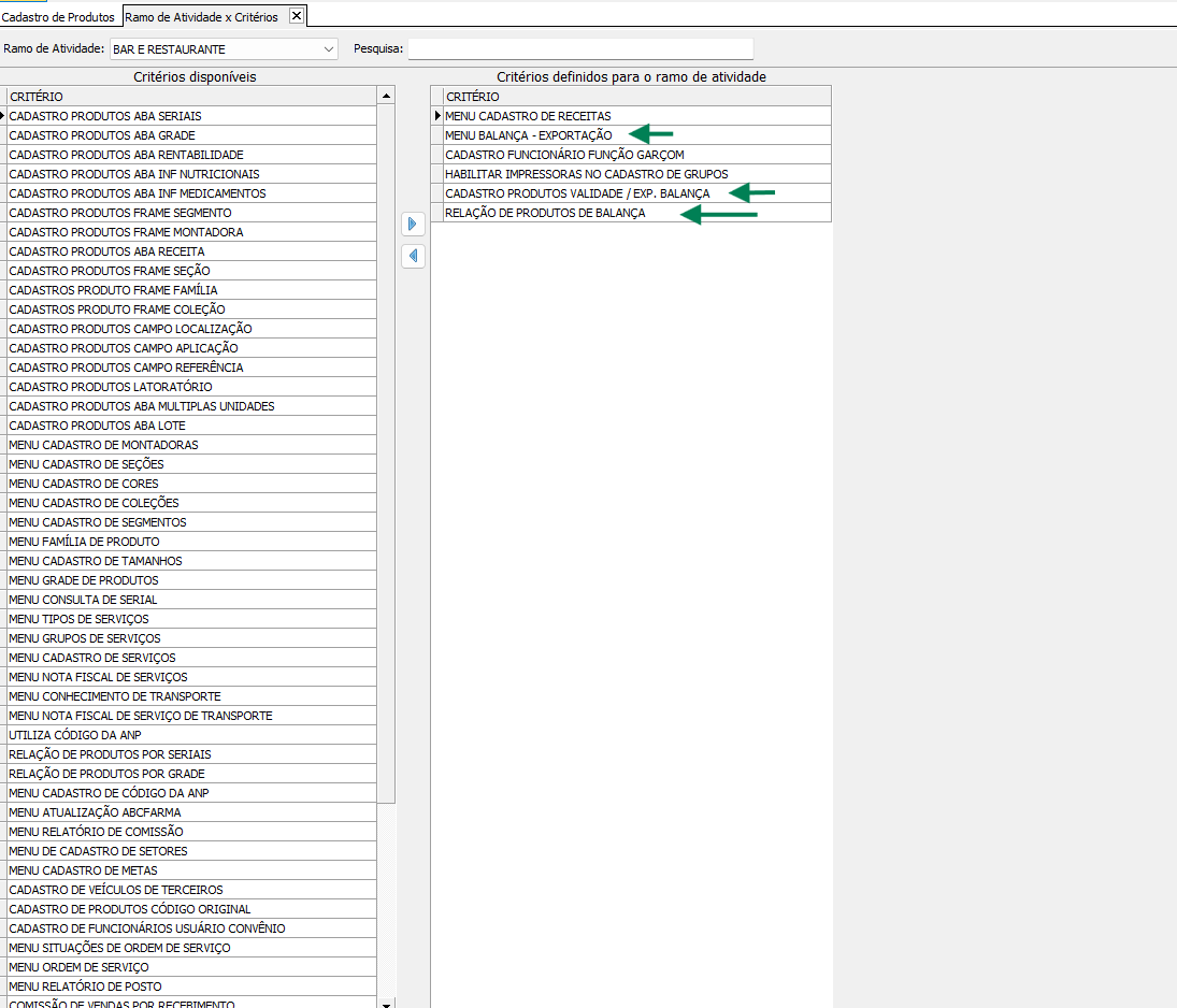 1. Nos gestores, é importante que estejam configurados os seguintes ramos em Arquivos> Critérios> Ramos de atividadesx Critérios: