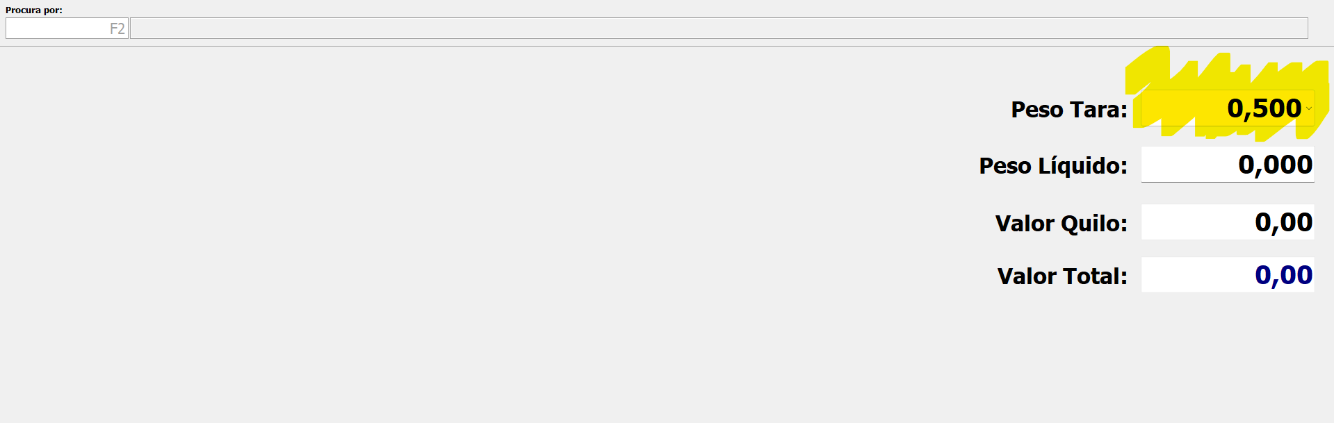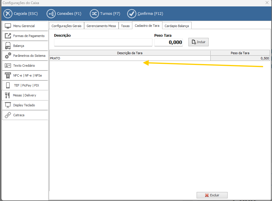 Após a configuração o sistema ja irá informar a tara na tela do Food (cntrl+B)