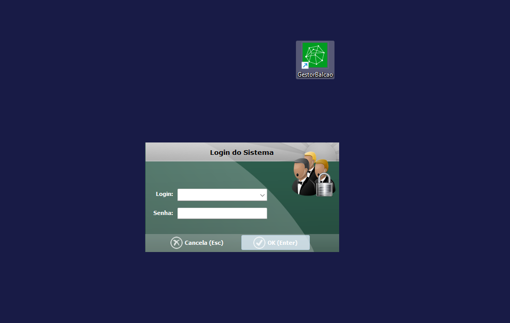 Ao ativar o controle de usuário na abertura do sistema, o Balcão passa a exigir login com usuário e senha sempre que o sistema for iniciado.