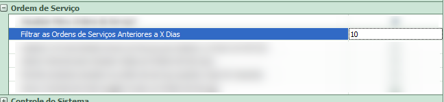 Esse parâmetro permite definir um período máximo (em dias) para a exibição das Ordens de Serviço no Balcão.