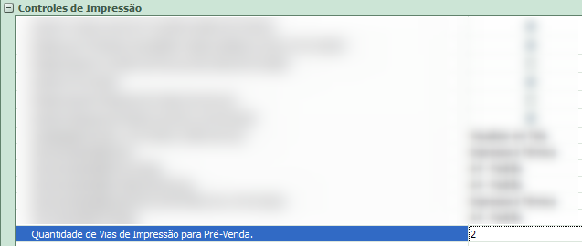Esse parâmetro permite definir o número de vias que serão impressas ao realizar a impressão da Pré-venda.