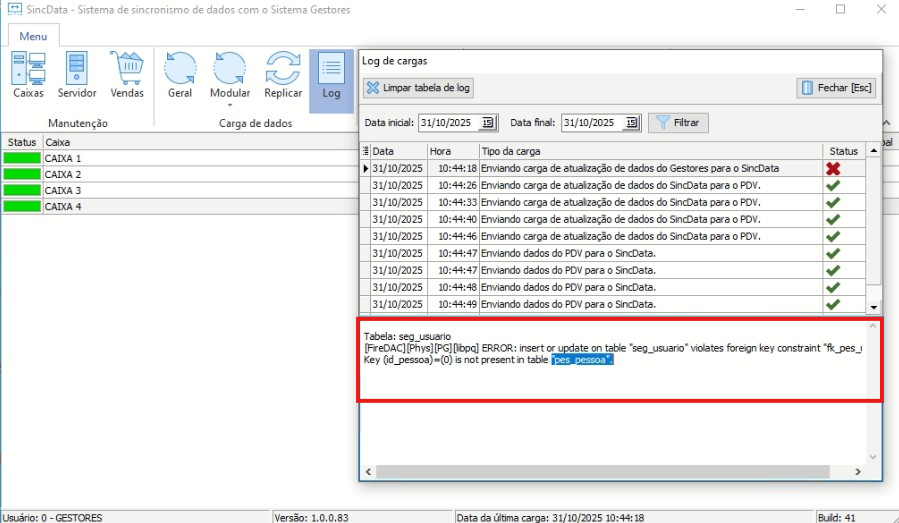 [FireDAC][Phys][PG][libpq] ERROR: insert or update on table "seg_usuario" violates foreign key constraint "fk_pes_usu".Key (id_pessoa)=(0) is not present in table "pes_pessoa".