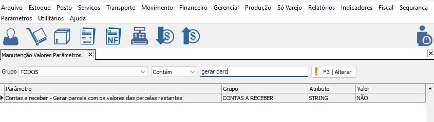 Para habilitar os campos Pgto. Débito e Pgto. Crédito em Contas a Receber, siga os passos abaixo: