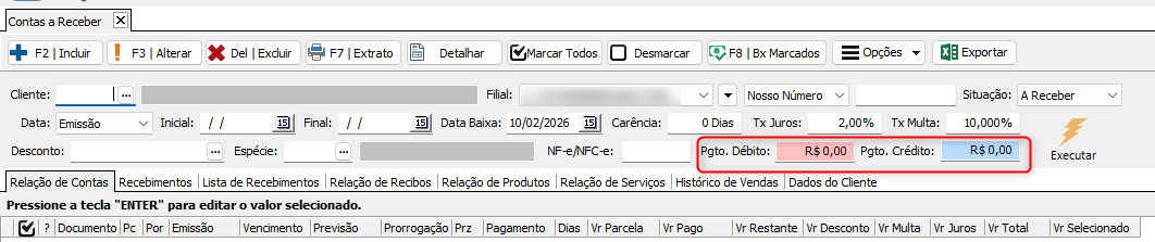 CONTAS A RECEBER: Como ativar os campos de Pgto. Débito e Pgto. Crédito