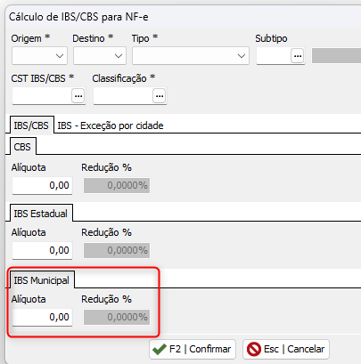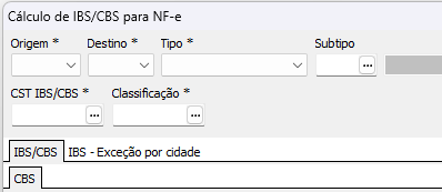 Fiscal > Tabelas Fiscais > IBS/CBS > Cálculo de IBS/CBS ;