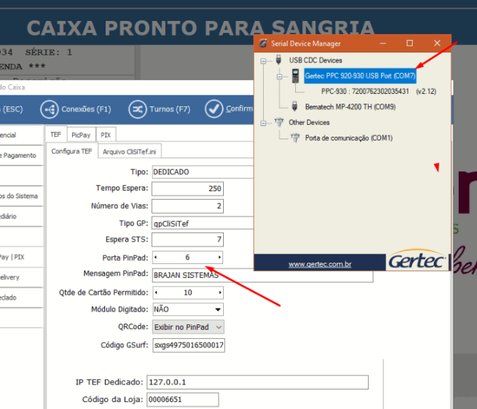 Após isso verificar se a porta COM está igual ao PinPad dentro do GestorPDV, veja abaixo: