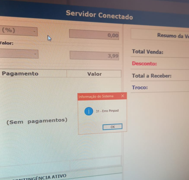 Nessa imagem está errado e com isso retorna o ERRO PINPAD ao finalizar a venda no GestorPDV