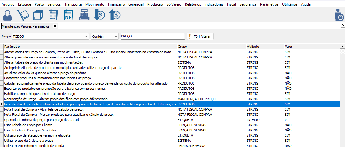 Para habilitar ou desabilitar, o preço de custo do produto, é necessário configurar o parâmetro correspondente no sistema: